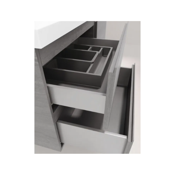 - Contém um salva-sifão com organizador de PVC para gavetas acabamento antracite.