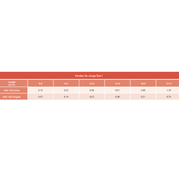 • Caudal recomendado para a PGA 1.1/2”: 6 a 21 m3 /h.