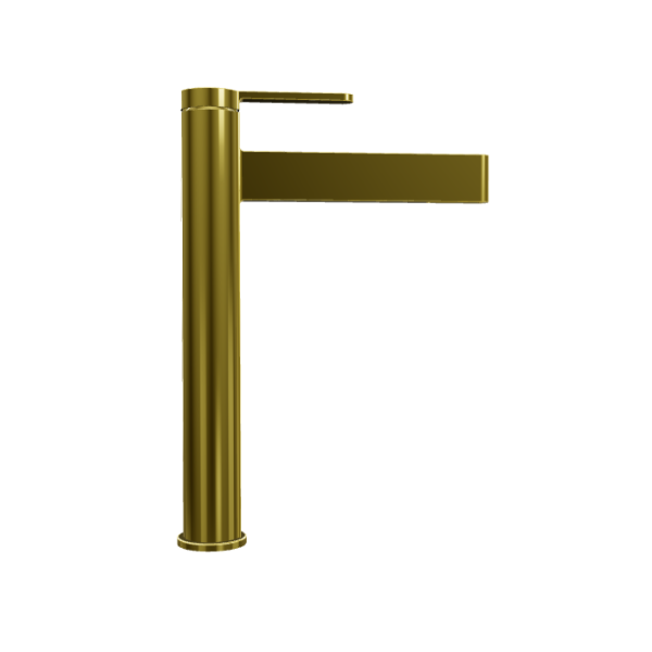 A torneira para lavatório Velvet II é um modelo elegante com acabamento em ouro escovado , ideal para pia tipo tigela.