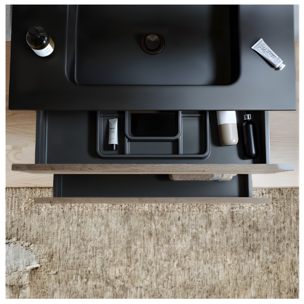 Taiga Móvel 3 gavetas c/pés antracite Torvisco+lavatório branco